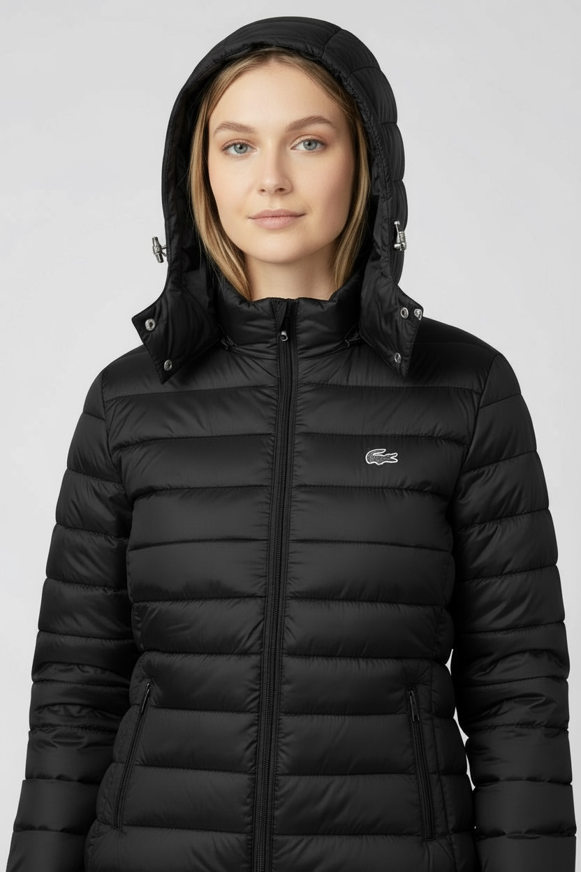 Γυναικείο Φουσκωτό Μπουφάν με Κουκούλα Lacoste – Μαύρο